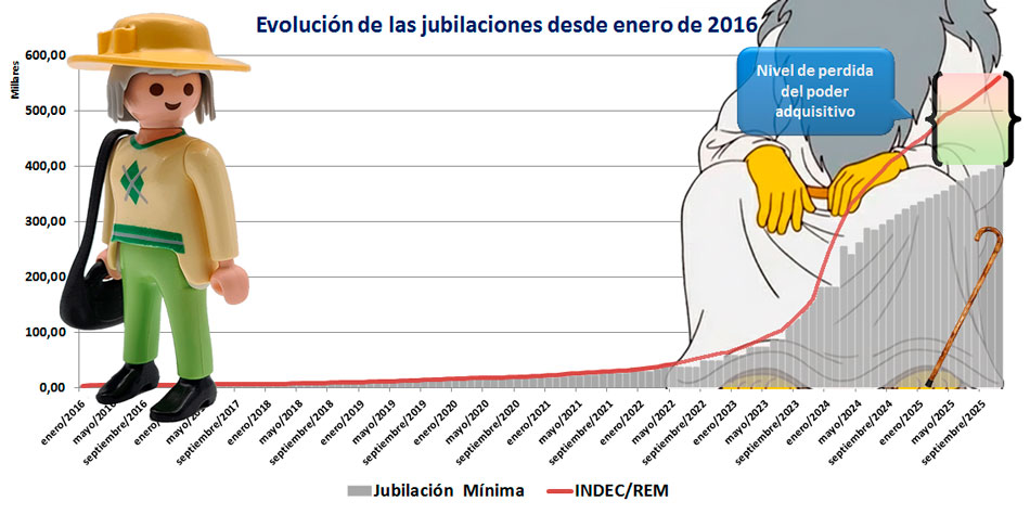 Al haber mínimo de los jubilados no le va mejor, también pierde en estas