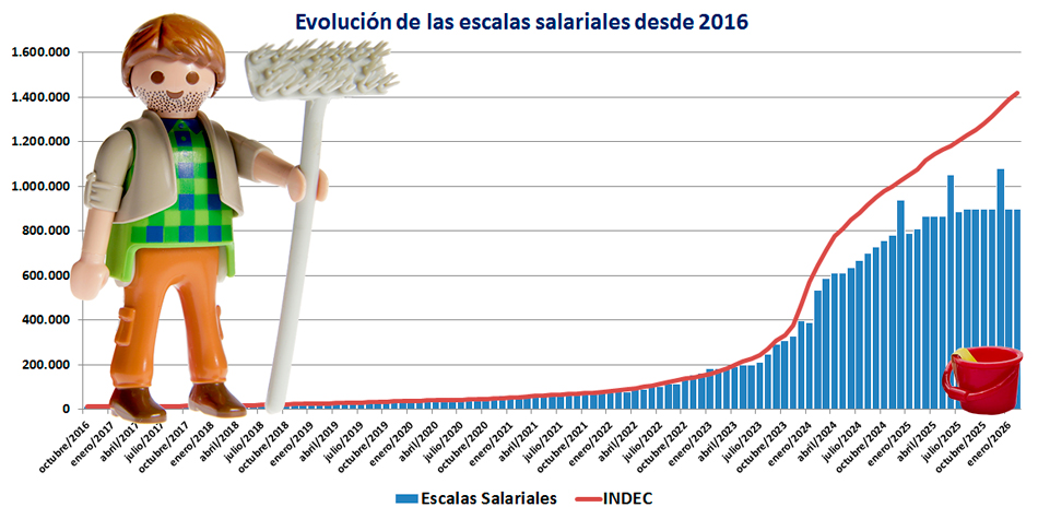 [BPN-15/02/26] Si no hay novedades salariales durante la segunda quincena de febrero de 2026, el promedio de las escalas salariales de los encargados de edificios perderá contra la inflación mensual -2,1 puntos porcentuales (pp), contra el acumulado anual -21,73 pp y -20,61 pp en la medición interanual. Para comparar las escalas salariales del sector, se promediaron las funciones de encargado permanente con y sin vivienda en sus cuatro categorías de cada mes. En los casos que correspondió, se sumaron los bonos acordados en paritarias o por el Poder Ejecutivo nacional, incluyendo los bonos del 20% que se pagan en junio y diciembre. Acuerdos salariales pendientes de homologación Quedan dos homologaciones faltantes. Para los cálculos de este mes no se tomaron en cuenta los siguientes acuerdos: 1.- Acuerdo del 9 de septiembre: Otorgó un aumento del 1,8% para septiembre, 1,7% para octubre, y 1,6% para noviembre, más un bono de 50 mil pesos para esos meses, viáticos para las funciones sin vivienda (con excepciones) y la integración del bono de 50 mil pesos a las escalas salariales. En este caso tampoco las entidades de administradores ni el SUTERH anunciaron si el acuerdo se podría considerar homologado tácitamente. El último movimiento del expediente fue el 4 de diciembre. 2.- Acuerdo anunciado el 30 de diciembre: Otorgó un aumento del 2% para enero, 1,8% para febrero, y 1,7% para marzo, más un bono de 120 mil pesos para cada uno de esos meses. Fue anunciado por Víctor Santa María (SUTERH) el último día hábil del año por YouTube. El último movimiento del expediente fue el 5 de enero. El incremento mensual En febrero el promedio de las escalas salariales no presentará cambios. Este mes el promedio de las escalas será de 900.237 pesos mensuales. El acumulado anual En febrero, el promedio de las escalas salariales se mantendrá en un -16,67% menor con respecto a diciembre del año pasado. Esto se debe a que, como todos los años, en diciembre se pagó un bono del 20% que no se cobró en enero, lo que provocó una baja brusca en los promedios de las escalas salariales del primer mes del año. Durante el último mes del año pasado, el promedio era de 1.080.284 pesos mensuales. La medición interanual El incremento interanual de las escalas salariales desde febrero del año pasado hasta el mismo mes de este año será del 11,38%. El promedio de las escalas salariales de febrero de 2025 fue de 808.228 pesos. Inflación (INDEC y BCRA) Según el Índice de Precios al Consumidor (IPC) del INDEC, la inflación de enero fue del 2,9% y para el Relevamiento de Expectativas del Mercado (REM) del Banco Central de la República Argentina (BCRA), la inflación de febrero será del 2,1%. Con base en estos números, la inflación interanual de febrero será del 31,99%.