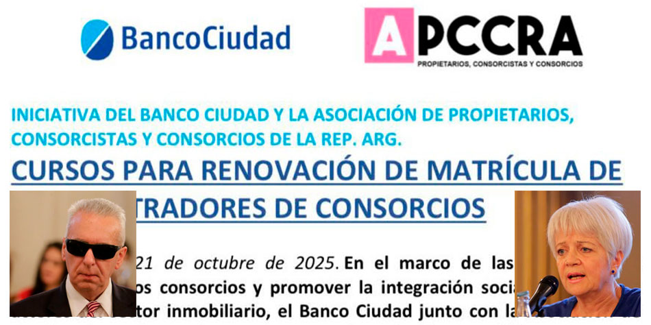[BPN-22/10/25] El pasado 21 de octubre, el Banco Ciudad y la Asociación de Propietarios, Consorcistas y Consorcios de la República Argentina (APCCRA) anunciaron que brindarán en forma gratuita el curso oficial de renovación exigido por el Registro Público de Administradores (RPA) a sus matriculados.